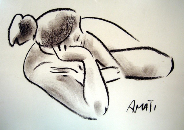 Luigi Amati kijkt onbevangen om zich heen en verbeeldt de essentie. Zuivere vormen, krachtige lijnen en sprekende kleuren kenmerken zijn tekeningen en schilderijen. Een ingetogen maar intens gevoel en levenskracht spreken uit zijn werk.