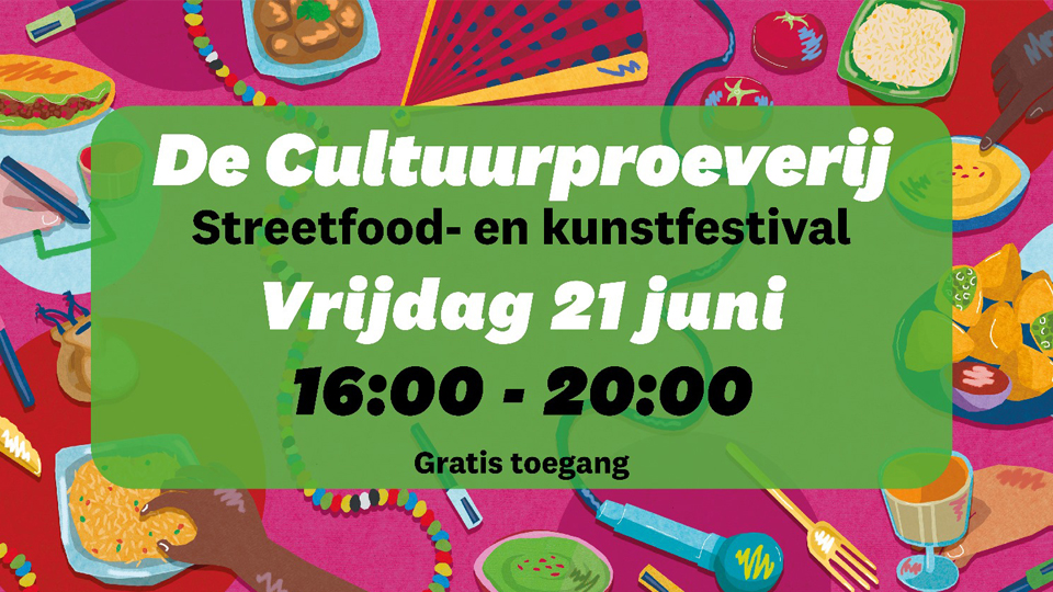 Tijdens de Cultuurproeverij proef je streetfood uit alle windstreken. Van Hollandse poffertjes tot Ethiopische injera en van saté tot falafel… Start je weekend goed met een culinaire ontdekkingsreis langs verschillende keukens! Plof neer op ons terras met een drankje in je hand en geniet van het diverse programma vol dans, muziek en andere verrassende optredens en activiteiten. Tussen 16:00 en 20:00 verkopen de beste lokale cateraars en thuiskoks hun snacks, zoetigheden en kleine maaltijden. Je vindt een mix van samosa’s, loempia’s, baklava, taco’s, bami, falafel, bami, rijst, curry en nog veel meer! Ook kun je bij de pannenkoek stand je eigen pannenkoek versieren!