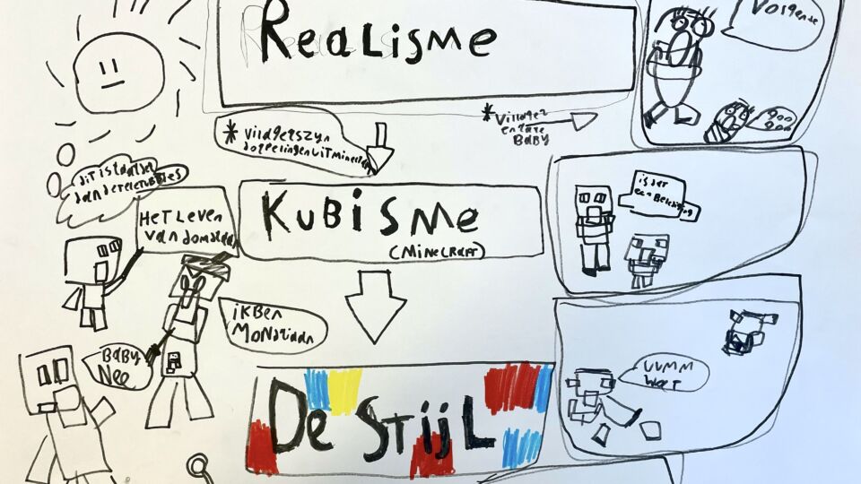 De kunstlessen die zij op school verzorgden zijn geïnspireerd op werken uit het Centraal Museum en hun introductie workshop in de klas: ‘Tentoonstellen doe je zo’.