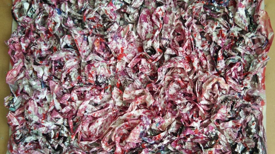 Uiteindelijk voelde Femke zich het meeste thuis bij een abstracte, expressieve stijl waarin duurzaamheid en hergebruik belangrijke elementen zijn. Ze werkt veelal met gevonden materialen, bijvoorbeeld met oude kranten. Dit ziet ze niet als het tegengaan van papierverspilling, maar ook als het recyclen van het -vaak slechte, negatieve- nieuws en een nieuwe bestemming te geven. Zoals ze ook zichzelf nieuw leven in heeft geblazen.