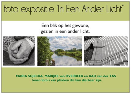 Deze expositie bestond uit foto’s van amateurfotografen Aad van der Tas, Maria Sujecka en Marijke van Overbeek. Ze toonden foto’s van plekken die hun dierbaar zijn: Utrecht, het Poolse dorp Tarnów en de regio Gelderland/Overijssel. Gekleurd door hun band met de omgeving, bekeken ze die met een andere blik. De foto’s toonden een blik op het gewone, gezien in een ander licht en met oog voor licht, sfeer en vorm.