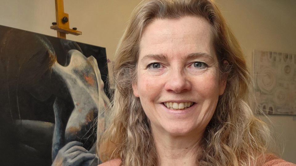 Marieke Kamperman presenteert haar nieuwste schilderijen in de foyer van ZIMIHC theater Zuilen.