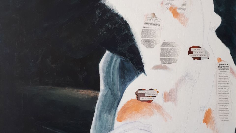 Deze werken zijn gemaakt met een bijzondere combinatie van mixed media: acrylverf, collage en olieverf. Die opbouw van materialen en technieken geeft elk portret een unieke gelaagdheid.