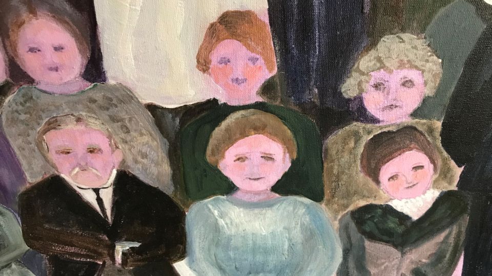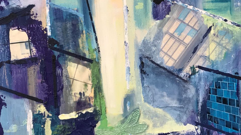 Het rode fietsje, de oude zwarte kat, de roze jurk van de pop, het rode regenjasje. Zes decennia later is de kleur nog steeds voor Danielle de basis van elk begin. De kleur leidt haar hand in de exploratie van het witte doek. Zo ontstaan haar schilderijen vaak uit een verlangen om tot een bepaalde kleur door te dringen. Uit de kleuren ontstaan vormen en een sfeer op het doek die beelden en herinneringen in haar hoofd roepen. En vooruit maar, er gebeurt wat gebeuren moet. Ze plaatst graag mensen centraal in haar schilderijen. Mensen die elkaar ontmoeten, mensen die samen zijn, ergens, vroeger of nu. Maar ook mensen die eenzaam zijn. Danielle houdt van de blik die de Franse fotograaf Henri Cartier-Bresson op het dagelijkse leven werpt en zijn foto’s zijn vaak voor haar dan ook een bron van inspiratie. Ze houdt ervan om flarden stof of stukjes papier met de verf te associëren. Het is haar manier om een beetje van de dagelijkse wereld in haar schilderijen te brengen.
