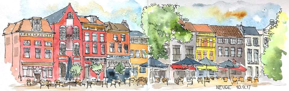 De Utrecht Urban Sketchers organiseren regelmatig zogenaamde sketchcrawls: op een afgesproken plek komen ze samen om te tekenen, tips en ervaringen uit te wisselen en elkaars werk te bekijken. Zo zetten ze de ‘eenzame’ tekenactiviteit om in een groepsgebeurtenis. Lijkt het je leuk om mee te doen? Word dan lid van de facebookgroep. Geeft niets als je niet goed bent. Het is leuk om samen te tekenen.