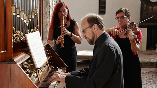 Jaël Vuijk (barokviool), Pauline Schenkelaars (blokfluit) en Dick Duijst (orgel).