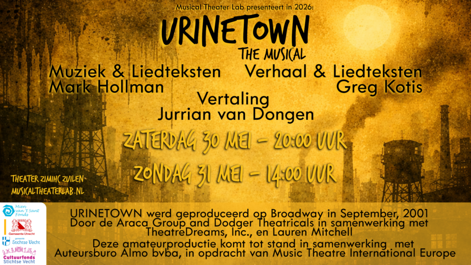 Op 30 en 31 mei speelt Musical Theater Lab de voorstelling Urinetown in ZIMIHC theater Zuilen!