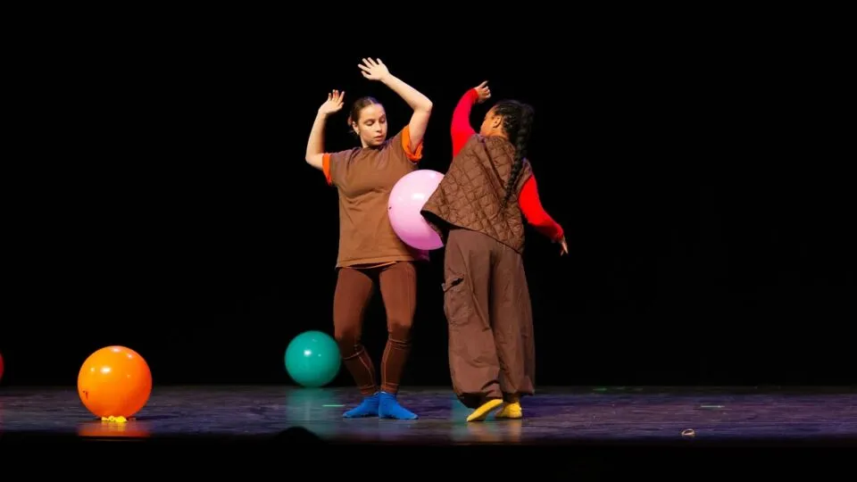 In Balaballona ontmoeten drie dansers elkaar voor het eerst. Eerst is er afstand en verlegenheid, maar dan verschijnen de ballonnen—elk met een eigen kleur en emotie. Wat begint als een voorzichtige verkenning groeit uit tot een speelse, beeldende dans over verbinding, verschil en verandering.