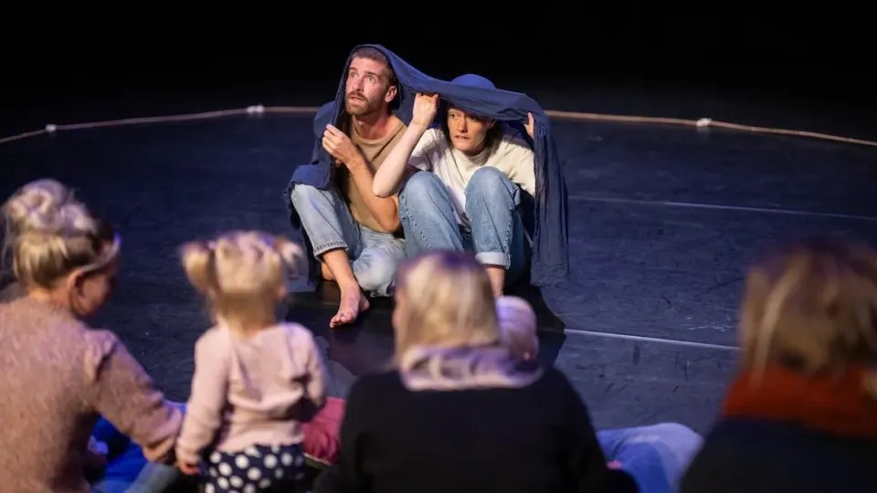 Samen laten we langzaam iets nieuws ontstaan, een tent waarin je met ons mag schuilen. Kruip je dichterbij? Dan luisteren we naar het ritselen van de bladeren, de druppels van de regen en laten we ons betoveren door de kleuren van de doeken. Zie je de spannende schaduwen, diertjes die je kietelen en vuurvliegjes die voor ons dansen? Samen met je ouder of alleen mag je deze warme wereld ontdekken.