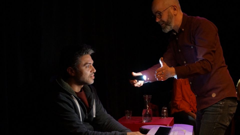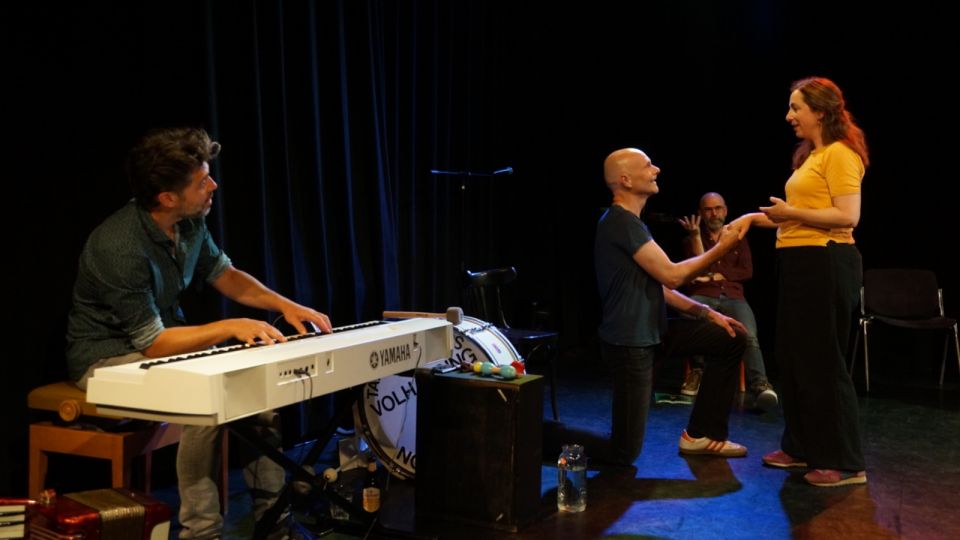 Vijf acteurs en een muzikant improviseren ter plekke op een interview met een deskundige. Dat leidt tot een spannende dynamiek tussen interview en improvisatie.