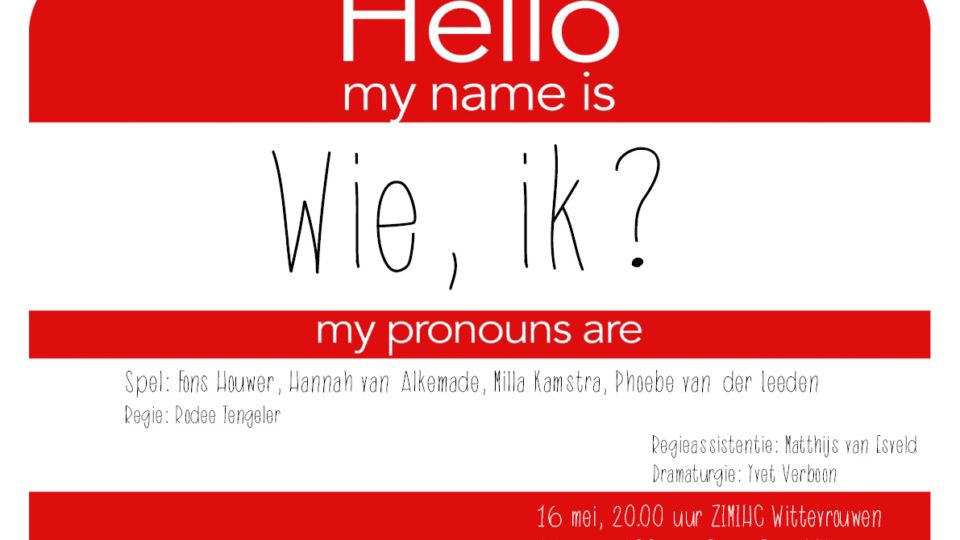 Wie, ik? Vraagt je om jezelf te onderzoeken, zoals wij dat ook hebben gedaan in het maken van deze voorstelling. Doe je te goed aan de markt van identiteit voor je neus, durf over de streep te gaan en verwacht het onverwachte – dat doen wij ook.