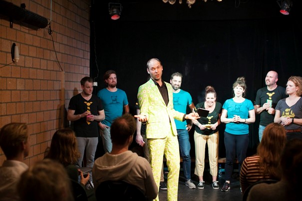 Er worden korte scènes ter plekke geïmproviseerd: het publiek mag bepalen hoe het verhaal verloopt. Veel positieve energie en lekker hoog tempo zorgen voor een heerlijke theatersportvoorstelling. Be there!