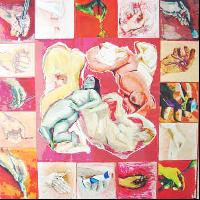 De Toets bestaat 30 jaar. Ze telt 100 leden die kunnen kiezen uit zeven teken- en schildersessies per week, begeleid door zeven verschillende docenten. De leden zijn op elke sessie welkom. Maar in de praktijk werkt dat anders. Ze ontdekken al snel bij welke docenten en groepen ze zich het beste thuis voelen. Daaraan blijven ze behoorlijk trouw. Ons vierkant laat zien dat modeltekenen erg populair is. Twee weken per maand tekenen en schilderen we dan ook naar model. De derde week is bestemd voor stilleven. De onderwerpen in de vierde week worden bepaald door de docenten. De handen zijn tijdens zo’n vierde week ontstaan. Ze zijn een staalkaart van alle technieken en niveaus die we in huis hebben.