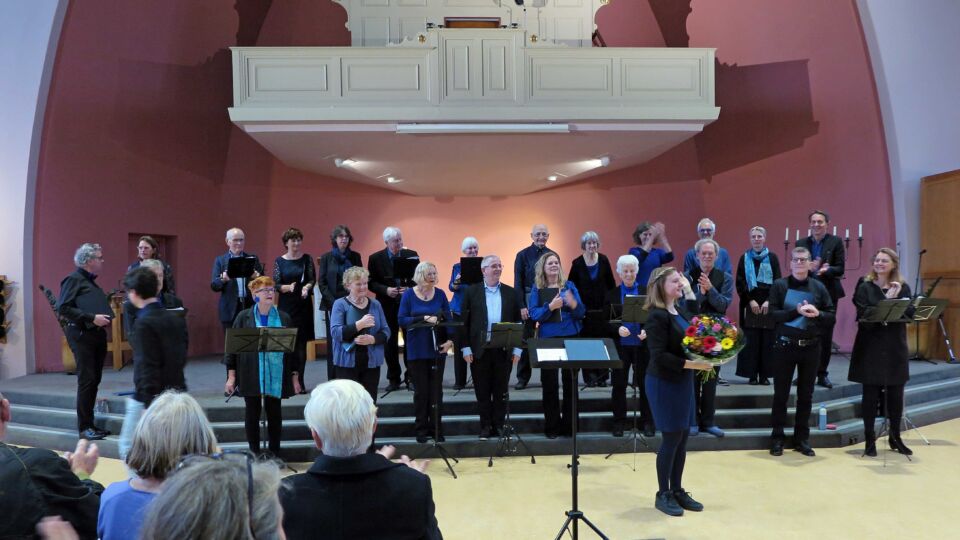 We zingen a capella muziek van de 15de tot de 21ste eeuw.