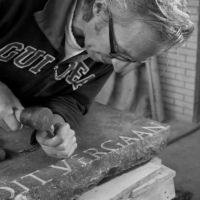 Beeldhouwer en letterhakker Michiel Deylius ontwerp en maakt grafmonumenten en geeft cursussen en workshops