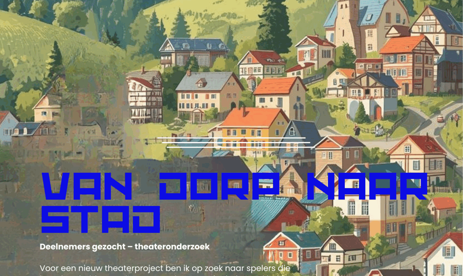 Voor een nieuw theaterproject ben ik op zoek naar spelers die hun dorp hebben verlaten, maar het nog niet helemaal hebben achtergelaten.