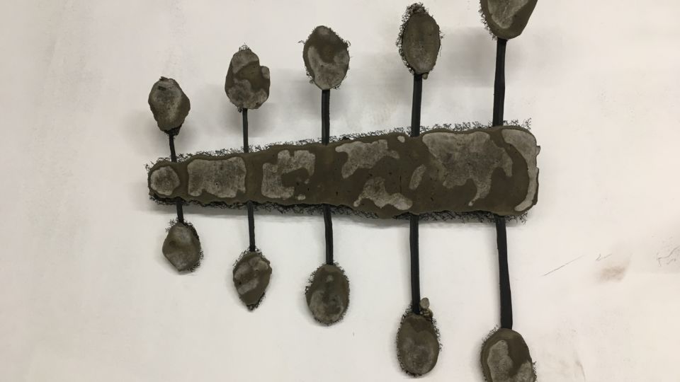 De fascinatie voor materialen zoals (aluminium)cement en bijenwas zijn vaak terug te vinden in mijn werk net als textielachtige technieken, materialen met een verleden of die voor iets anders bedoeld zijn. Mijn nieuwste werk is het ‘conserveren’ van een tijdsbeeld met materialen die hiervoor van oudsher ook voor gebruikt werden.