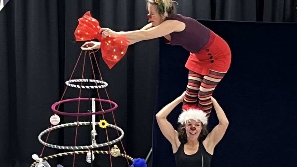 Kerst met clowns: Al hoepelend, jonglerend en vol acrobatische toeren bouwen Loena en Flo met alles wat ze kunnen vinden een kerstboom die niet alleen groot, maar vooral heel bijzonder is! Een kerstboom hoeft niet perfect te zijn, als het maar gezellig is