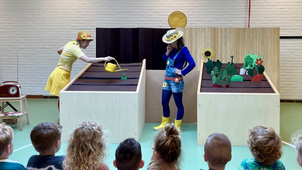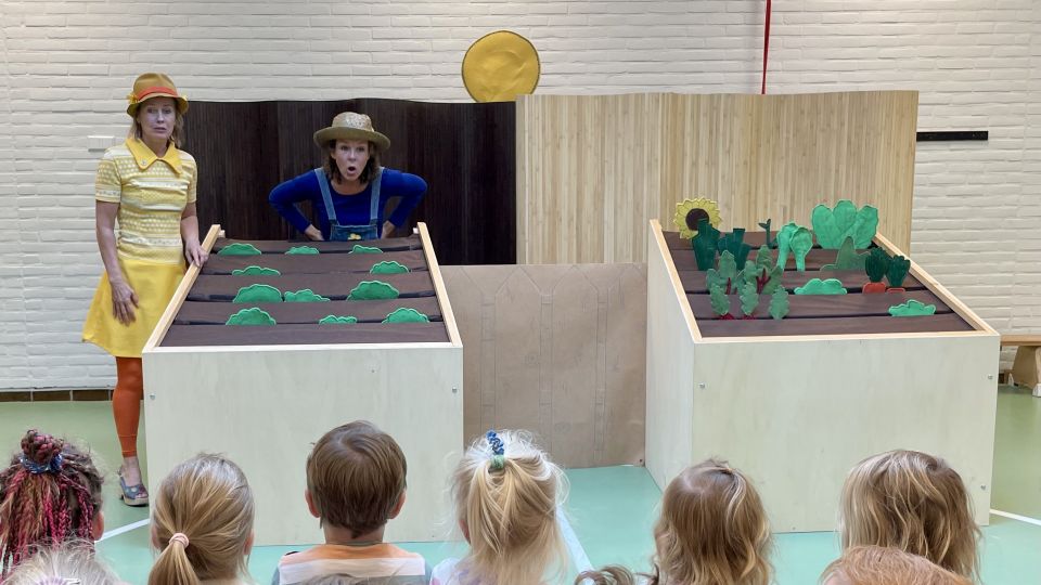 Loena en Flo in de moestuin is een grappige en leerzame voorstelling voor de onderbouw. Verschillende groene thema’s worden eenvoudig uitgelegd en uitgebeeld. Tuinieren, biodiversiteit, meer groen en minder tegels in de tuin komen aan bod. De groentes en dieren zijn van kleurig vilt gemaakt en de voorstelling zit vol vrolijke muziekjes.