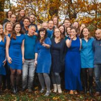 Gemengd closeharmony koor z(w)ingt jazz, soul en swing arrangementen begeleid door dirigent op piano.