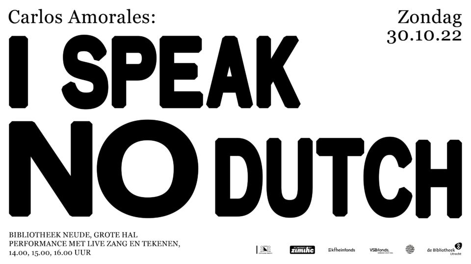 I Speak No Dutch is de titel van een performance van de internationaal bekende kunstenaar Carlos Amorales (Mexico) waarin hij samenwerkt met een projectkoor bestaande uit zangers uit de stad Utrecht. Deze performance vindt drie maal plaats op zondag 30 oktober 2022 in de hal van de Bibliotheek Neude.