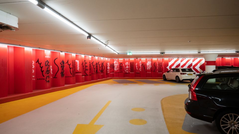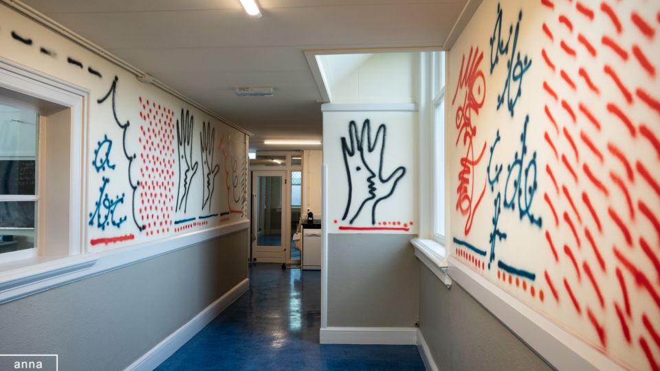 De tekens die Carlos ontwikkelde zijn ook aangebracht als muurschildering. In de parkeergarage onder het Jaarbeursplein is deze muurschildering tijdelijk aangebracht. In ZIMIHC theater Wittevrouwen is te muurschildering te zien op de 2e etage tijdens openingstijden van het gebouw.