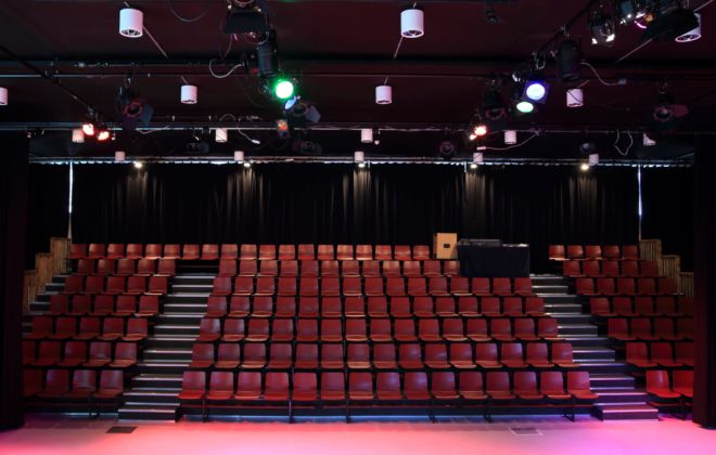 Onze theaterzaal van maar liefst 800m2 kun je volledig naar wens laten inrichten en is daarmee geschikt voor zowel kleinschalige als grotere evenementen. De ruime foyer, die los te huren is, is een sfeervolle overdekte patio met bar.